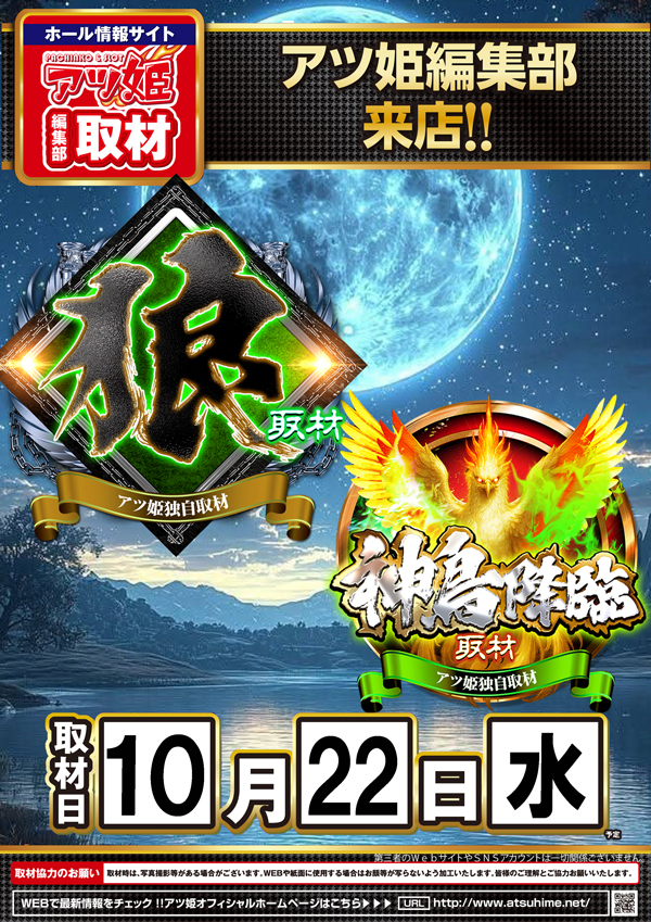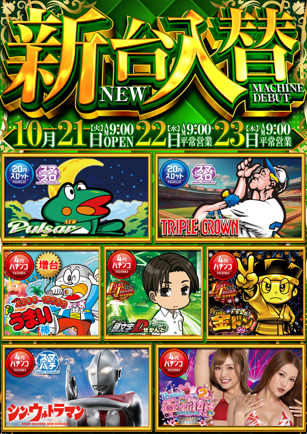 10月21日【火】新台入替初日!!是非ご来店ください!!