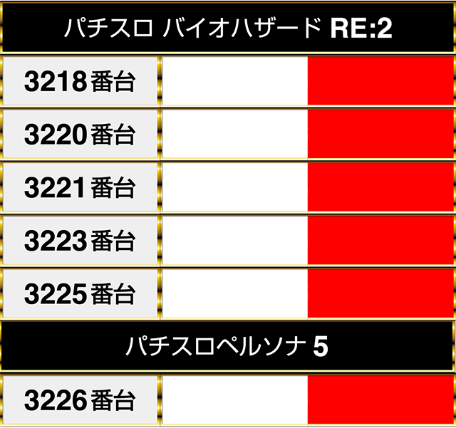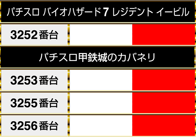 『パチスロ バイオハザード7 レジデント イービル』の3252番台をあわせると、4台が並んでプラスptとなった。
