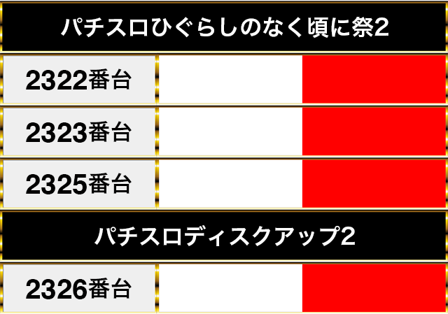 『パチスロひぐらしのなく頃に祭2』の2322番台から2325番台までが並んでプラスpt!!