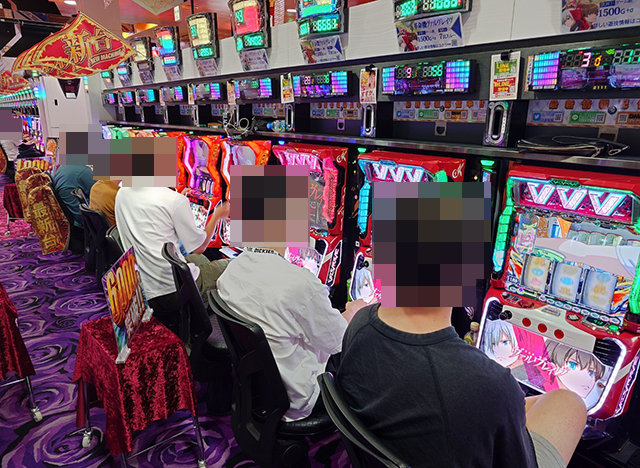 『パチスロ 革命機ヴァルヴレイヴ』や『押忍!番長4』も空き台が少なく、にぎやかな状況。