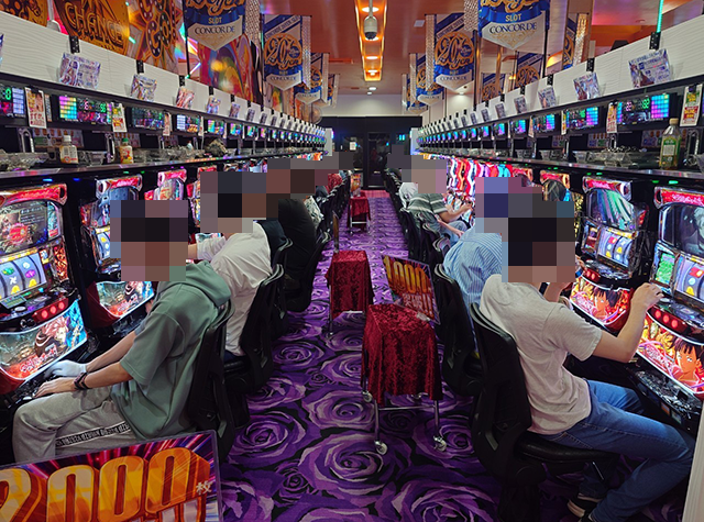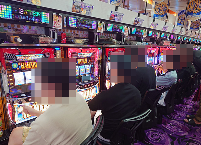遊技を満喫しているようなプレイヤーが多く、いくつもの台で華やかなシーンがみられた。