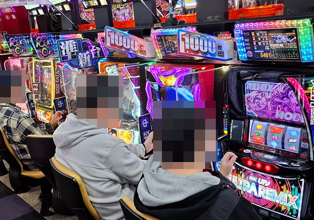 「パチスロ 革命機ヴァルヴレイヴ」でも、プレイヤーたちは楽しそうに遊技中。