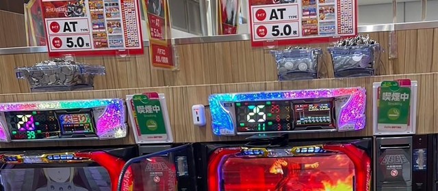 6.5号機もスマスロに匹敵。『パチスロ 新鬼武者2』『パチスロ甲鉄城のカバネリ』『パチスロ炎炎ノ消防隊』といった定番人気台からバラエティーコーナーに至るまで、台上カウンターには華々しい数字が並んだ。