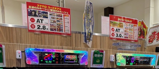 目を奪われたのがスマスロコーナー。『スマスロ北斗の拳』を代表格に、『スマスロ バイオハザードヴィレッジ』『パチスロ 革命機ヴァルヴレイヴ』『押忍!番長4』『スマスロ コードギアス反逆のルルーシュ/復活のルルーシュ』といった機種がグイグイ出玉を伸ばしていた。