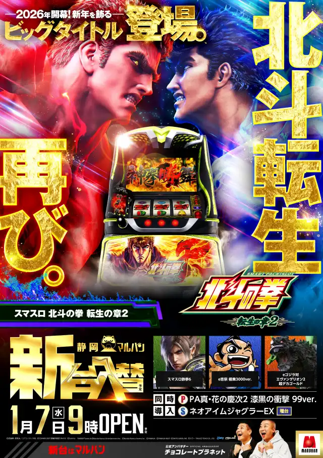先月に続いての「四天王決戦」横並び好況スポットが連発12月11日(月)に静岡の東部マルハン4店舗で実施された「四天王頂上決戦取材」。その対象店のひとつ『マルハン裾野北店』にてデータ調査を敢行した。 前回の調査ではパチスロで+8千・+7千を超…