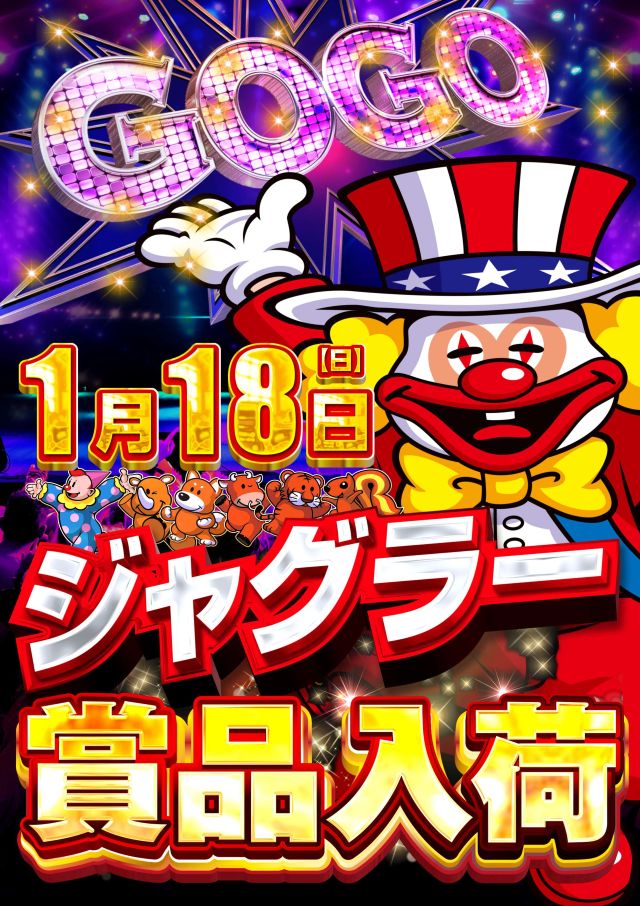 1月18日 ジャグラー賞品入荷!是非、ご来店ください♪