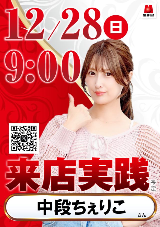 中段ちぇりこさん来店実践予定!本日朝9時スタート!