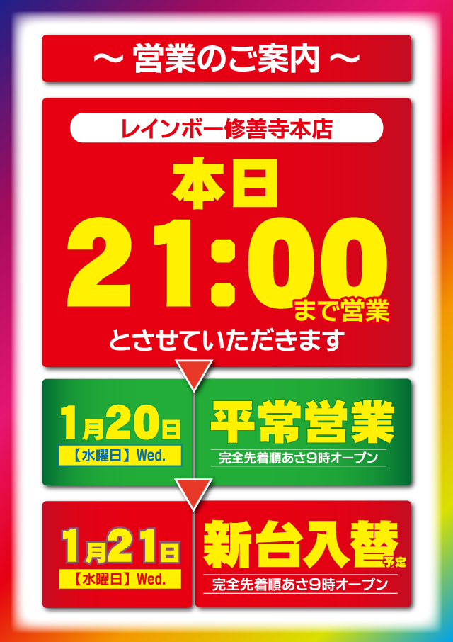 本日🌈1月17日🌈虹二乗レ🌈多数様のご来店をお待ちしてます!
