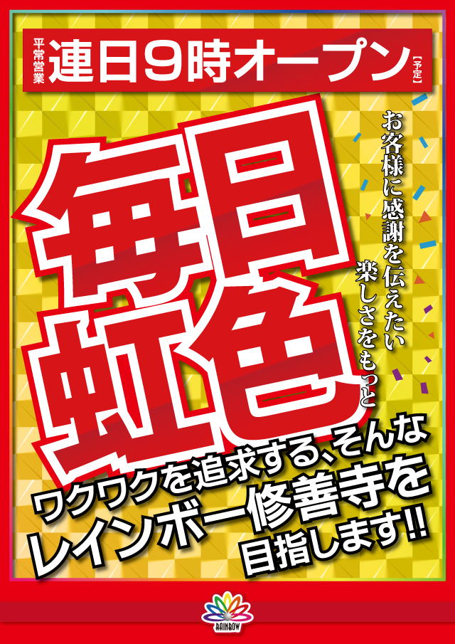 🌈週末も虹色🌈平常営業 あさ9時オープン!!