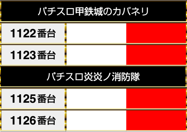 並びで設置されており、最終的には1122番台から1126番台までが連なってプラスptを記録。