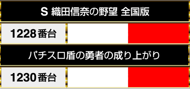 『S 織田信奈の野望 全国版』と『パチスロ盾の勇者の成り上がり』も2機種を通してプラスptの台が並んだ。