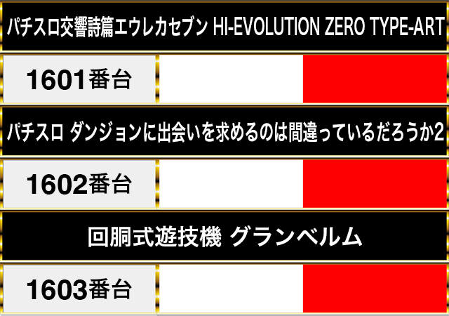 1601番台の『パチスロ交響詩篇エウレカセブン HI-EVOLUTION ZERO TYPE-ART』から1603番台の『回胴式遊技機 グランベルム』までも複数の機種を通して盛り上がっており、華やかなシーンが多い。