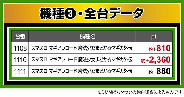 『スマスロ マギアレコード 魔法少女まどか☆マギカ外伝』では、1110番台が約+2,300ptを超えた。