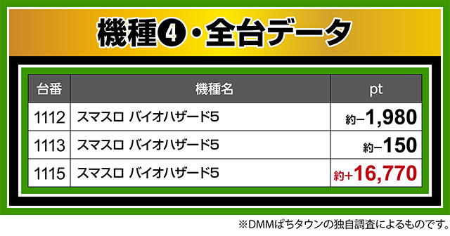 『スマスロ バイオハザード5』も注目をした機種のひとつで、1115番台が約+16,770pt!