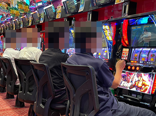 『SLOTバジリスク~甲賀忍法帖~絆2』や『パチスロ バイオハザード7 レジデント イービル』でも楽しげなプレイヤーがみられるなど、魅力を感じる並びがいくつもあった。
