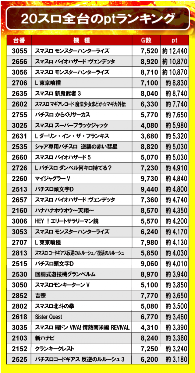 ①20スロ全台のptランキング