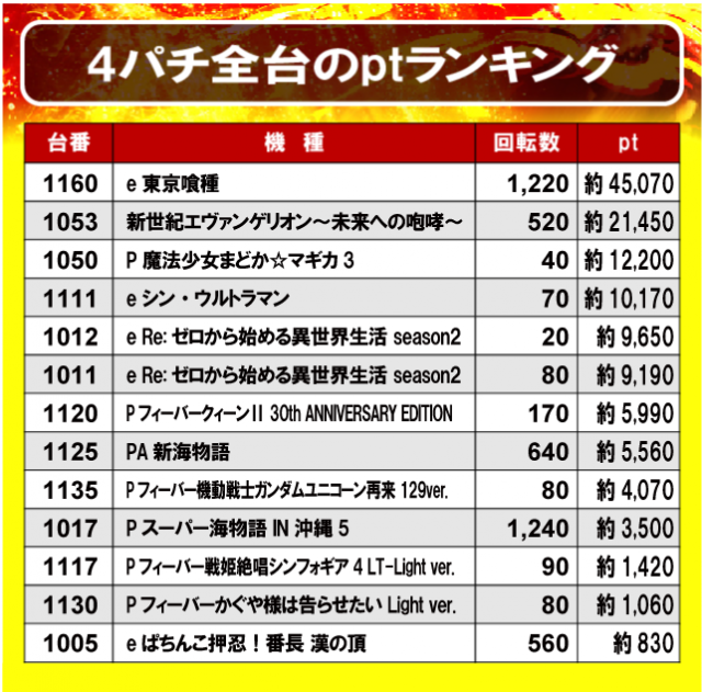②4パチ全台のptランキング