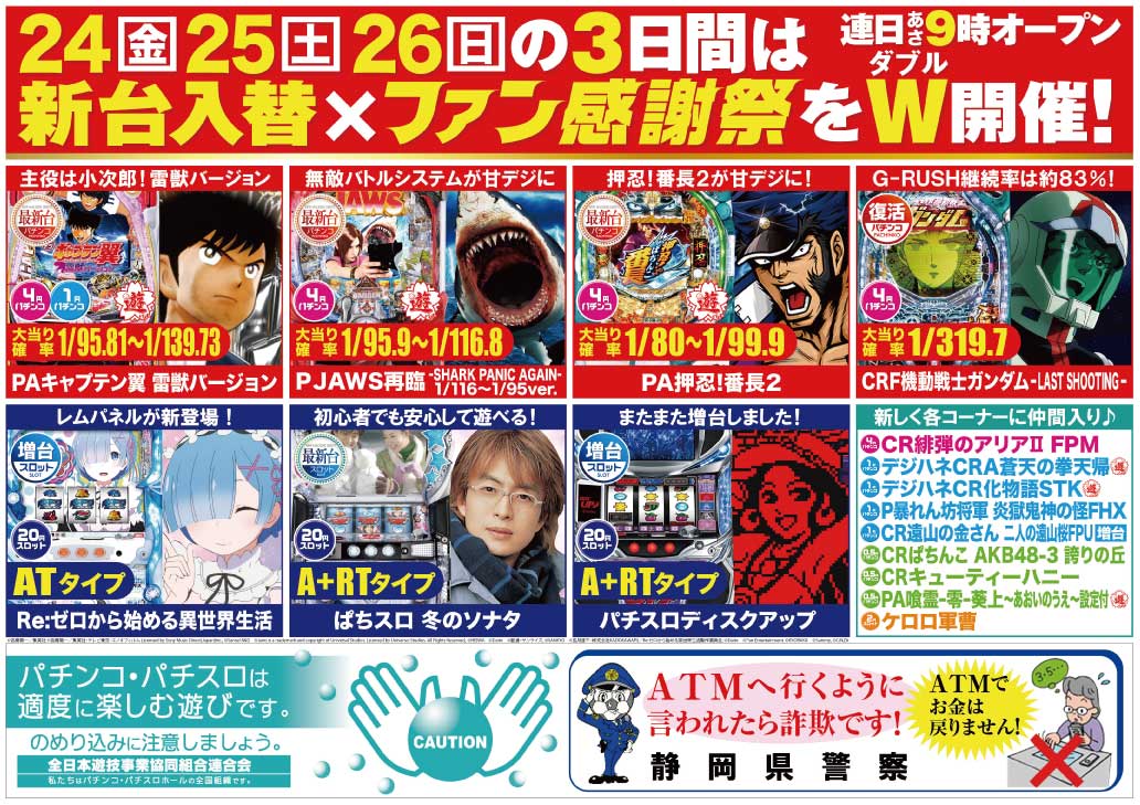 明日はツインの並びたくなる新台入替!9時オープンです!