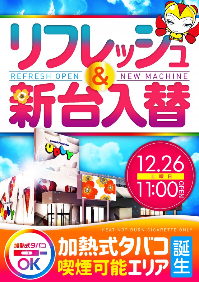 本日リフレッシュ&新台入替 初日11時OPEN!!