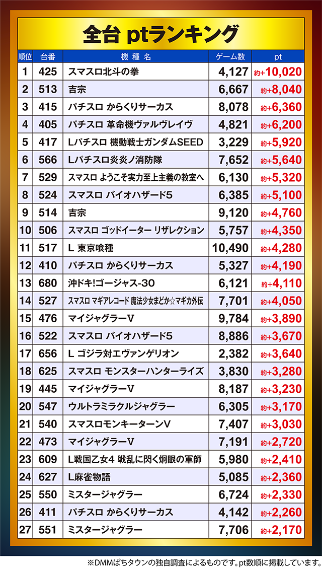 パチスロ全台・ptランキング