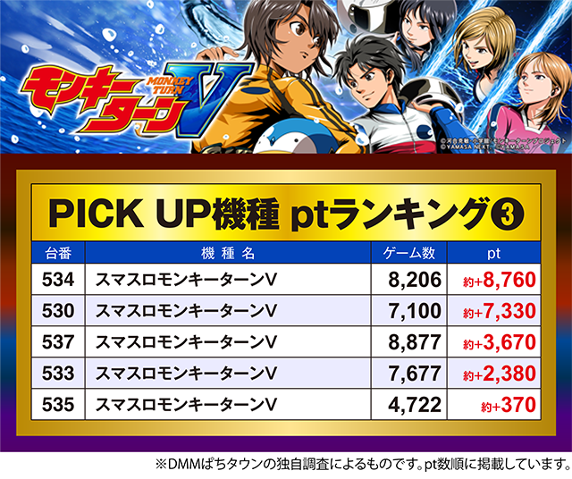 「スマスロモンキーターンV」では、534番台と530番台が約+7,300pt超。