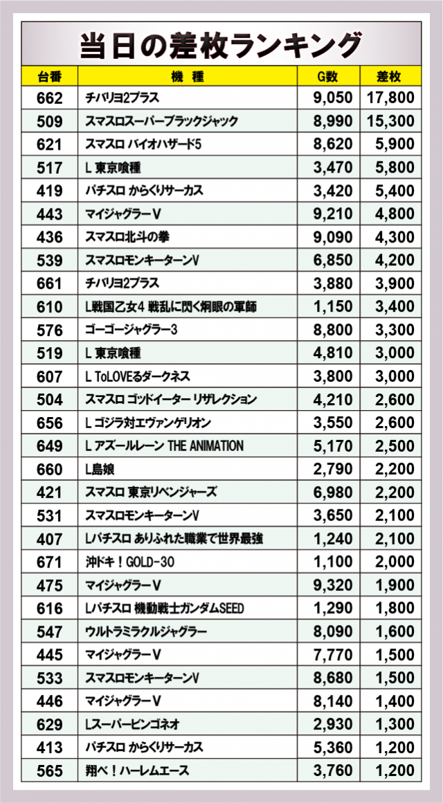 ※記事内の差枚表記はぱちタウン独自調査に基づくものです。ご了承ください。