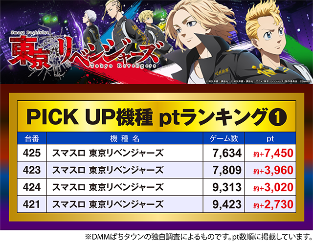 「スマスロ 東京リベンジャーズ」の425番台が約+7,400ptオーバー。