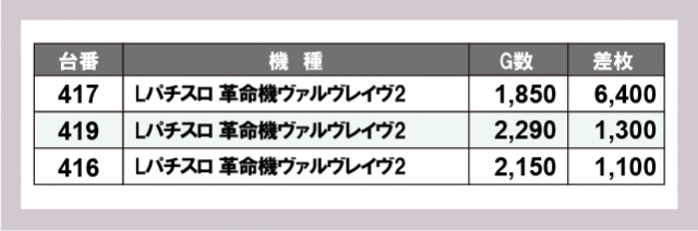 ※台番号順に掲載しています