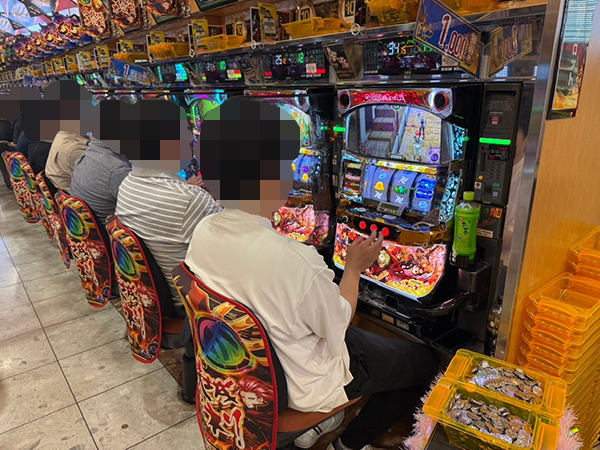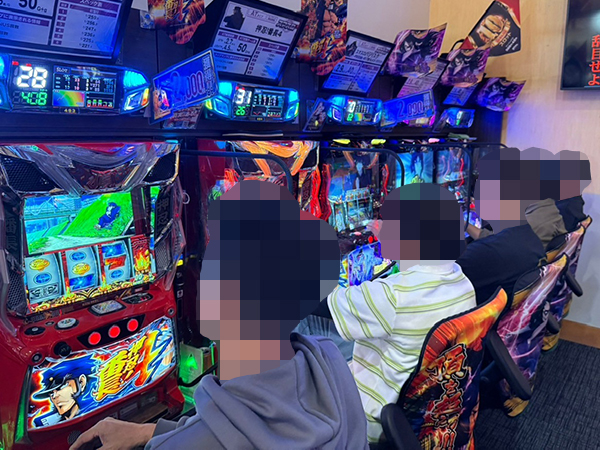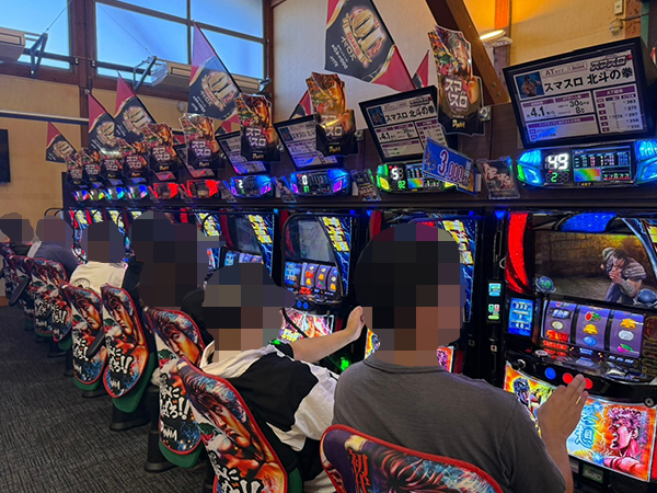 1000円/90枚パチスロに目を向けると「スマスロ北斗の拳」や「押忍!番長4」が微笑ましい状況。機種性能を最大限に発揮するプレイヤーが複数見られた。