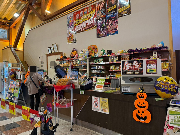 ハロウィン仕様の景品コーナーにはドリンク類やお菓子、インスタント食品が用意されており、おみやげ選びも存分に楽しめることだろう。