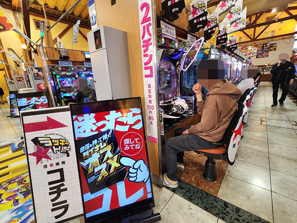 店内では貸し玉料金を問わず様々な機種で、心ゆくまで楽しむプレイヤーの姿が見られた。