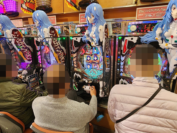 100円/90玉パチンコは「ぱちんこ シン・エヴァンゲリオン Type レイ」のにぎわいが大きく、機種性能を存分に発揮するプレイヤーに羨望の眼差しが向けられていた。