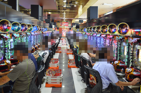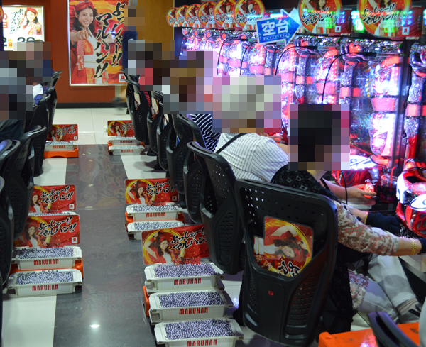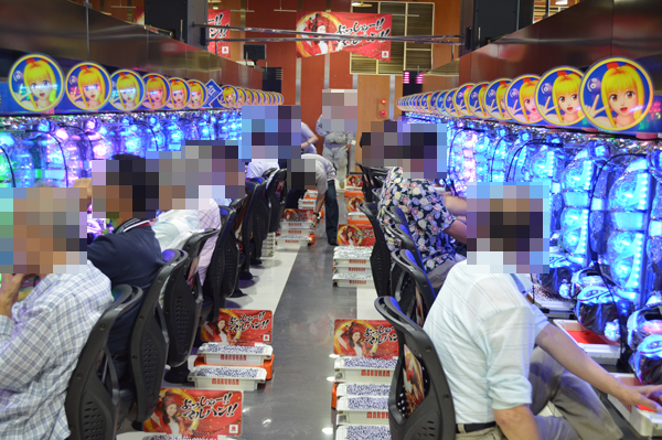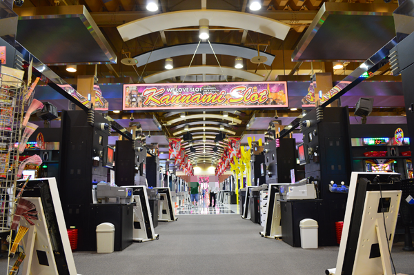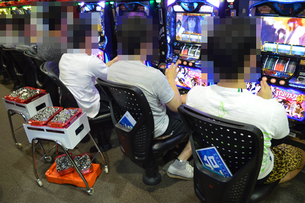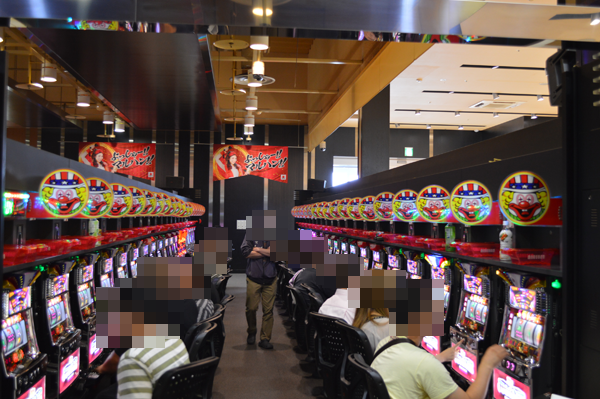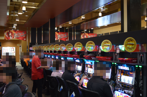 各シマで笑顔のユーザーに遭遇。カメラを構えるべきポイントが数多く存在していた。「マルハン函南店」の一面はパチスロコーナーで決まりだろう。