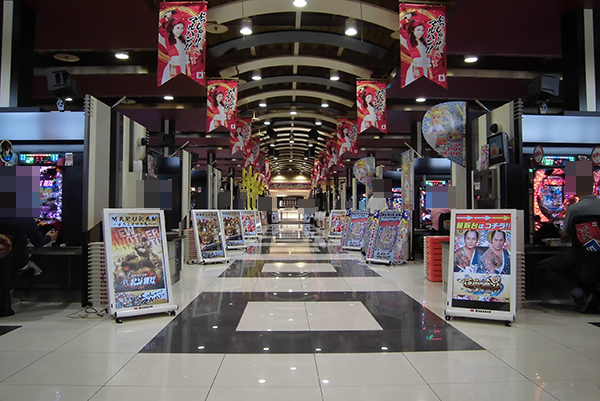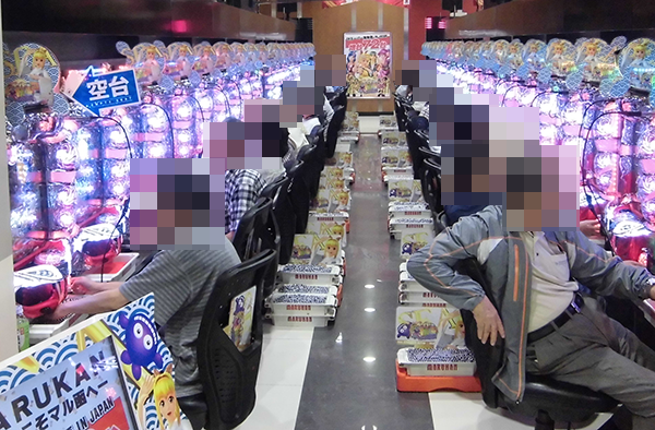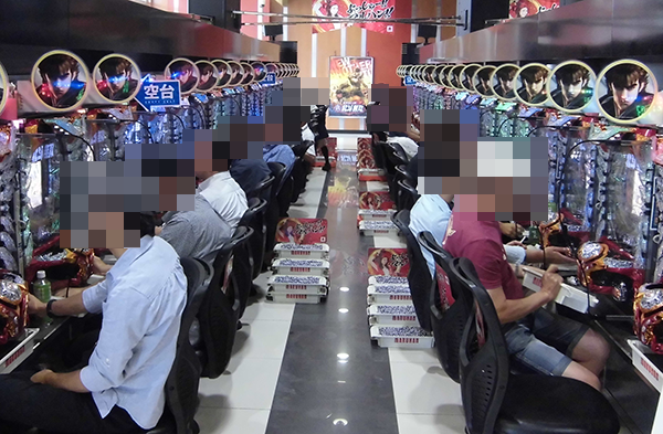 「ぱちんこCR真・北斗無双」や「CR牙狼 魔戒ノ花」でも多数のプレイヤーが遊技を楽しんでおり、シマ内の雰囲気はにぎやか。