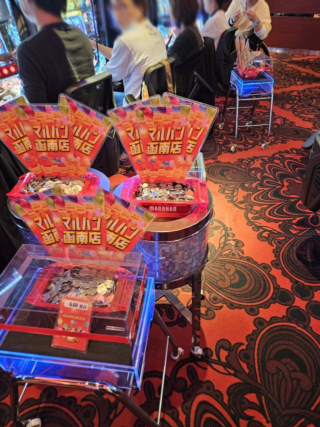 中でも1台あたりの平均で+5千弱と高水準となったのが『P真・北斗無双 Re:319ver.』17台。上に挙げた写真でもお分かりの通り、ドル箱で溢れた。