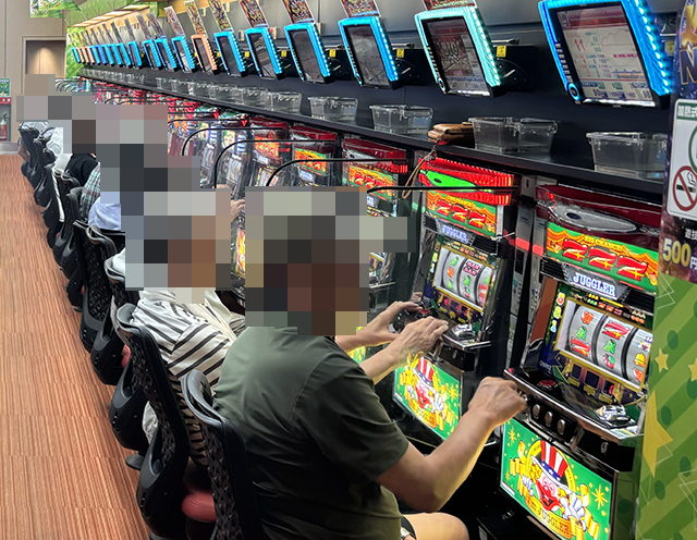 8月8日、静岡県田方郡函南町にある「プレイステーションタムラ本店」へと向かった。今回の取材は、「アルティメットスロット」だ。パチスロをみると、スマスロとメダル機の両方に活躍をしている姿があった。