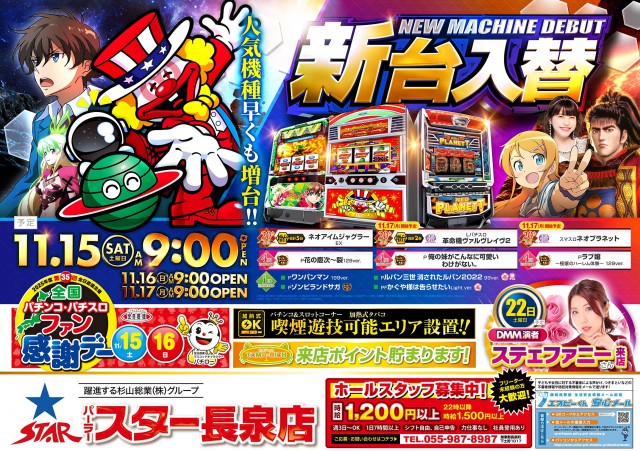 11月15日(土) 本日チラシ投函日 \新台入替/ 全国ファン感 〓本日2日目〓