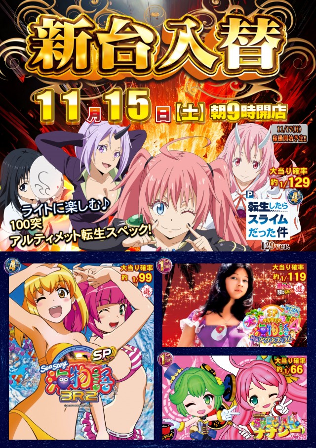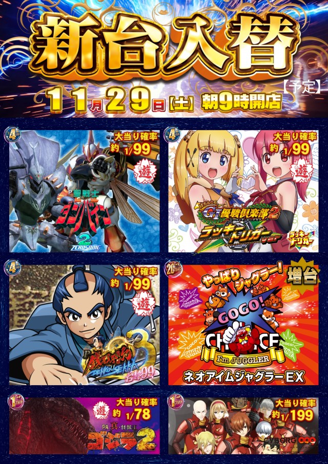 本日より新台稼働します♪♪ 是非、ご来店を!!