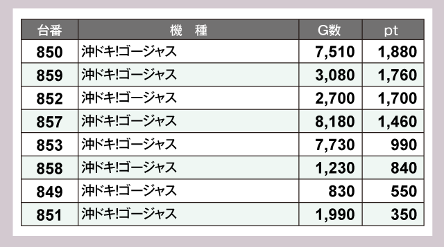 ※差枚pt順に掲載しています。