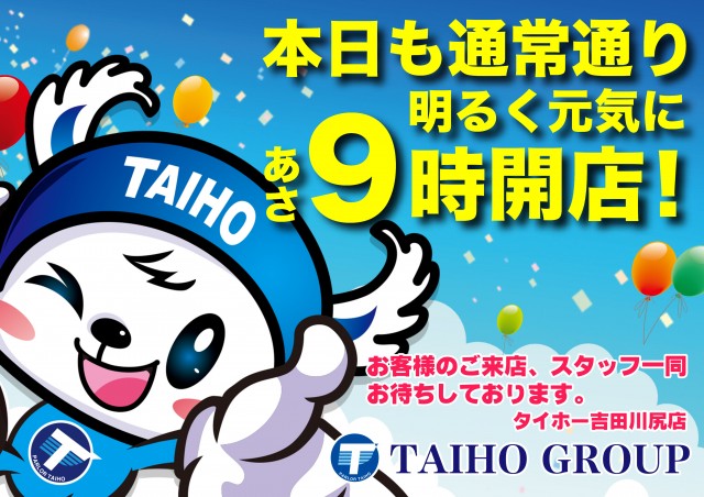 本日休まず営業中!TAIHO吉田川尻店でお楽しみください🎵