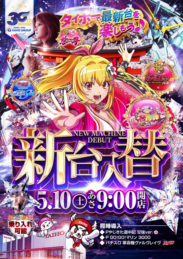 明日10日【土】☆新台入替☆朝9時開店!海ジャパン極他導入!