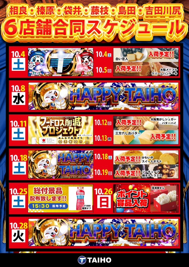 10月もタイホーで楽しもう