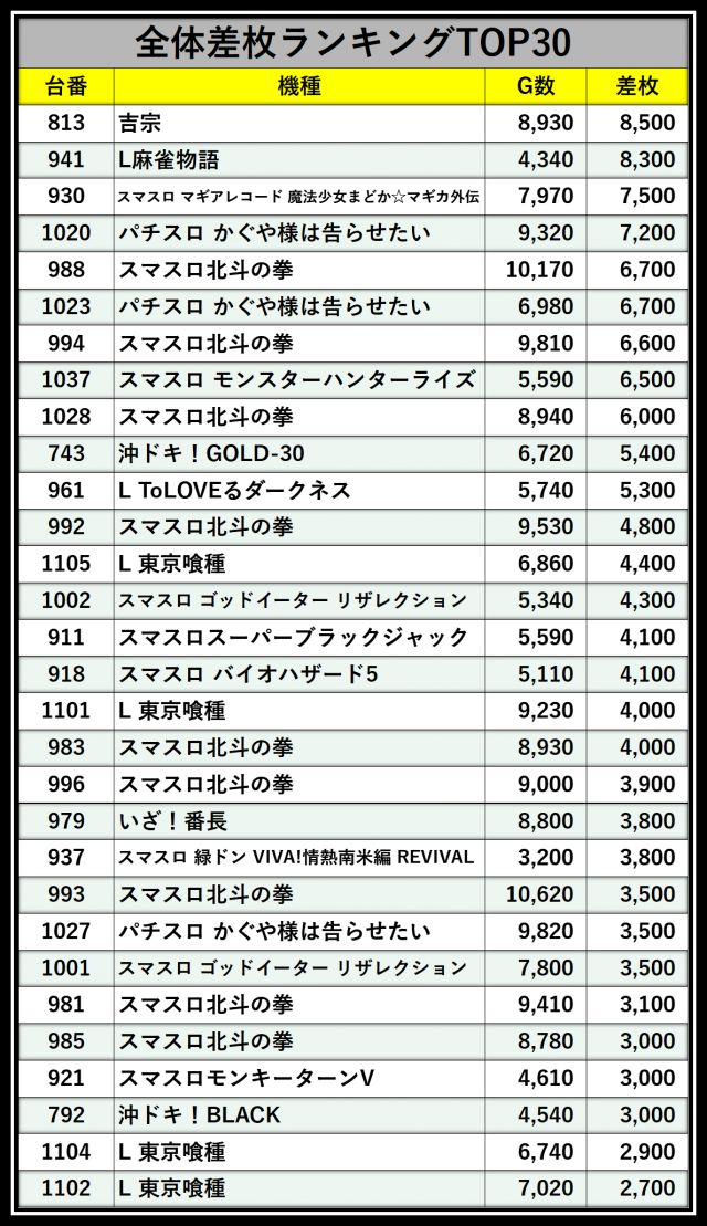 その結果の中から、ぱちタウンが注目すべきポイントを厳選してユーザーにお届け!プレイヤーが楽しんだ一日を下記データにて振り返ってみて欲しい。