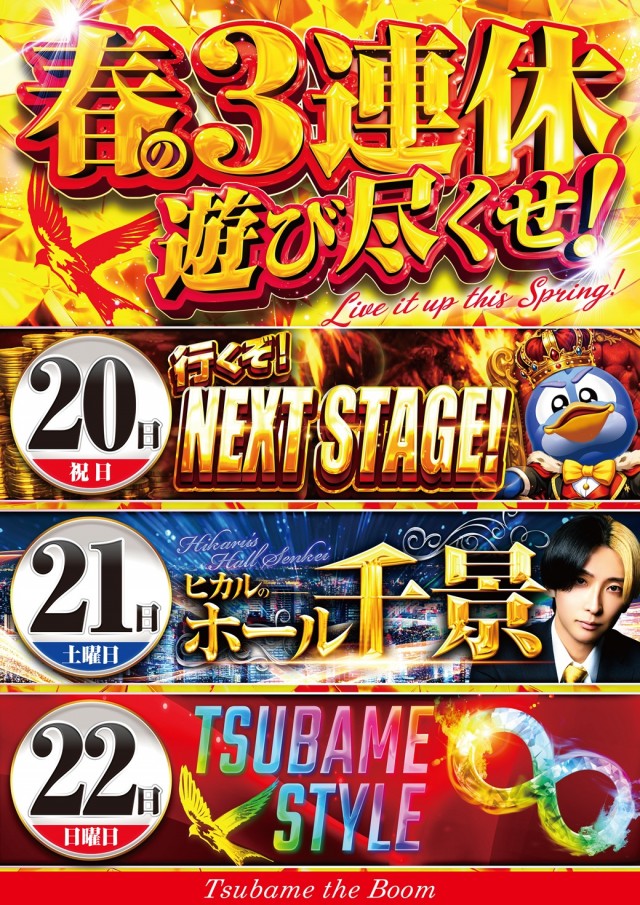 明日12日は『つばめザ・ブーム』で遊び尽くせ!朝9時OPEN