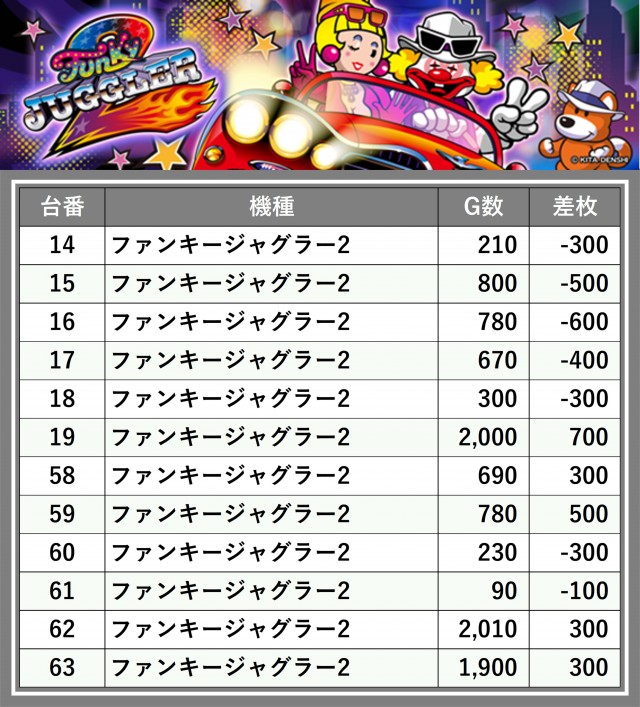 厳選された取材対象機種をはじめ、その他スロット全体から好記録が飛び出した!プレイヤーが楽しんだ1日を下記データにて振り返ってみて欲しい。