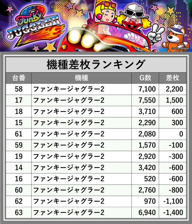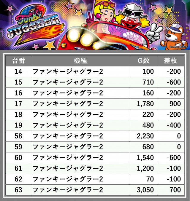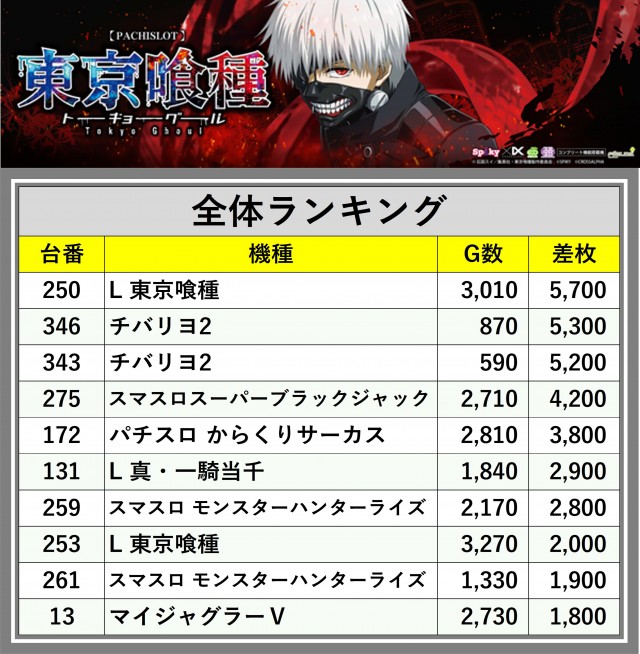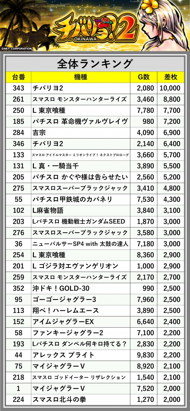 厳選された取材対象機種をはじめ、その他スロット全体から好記録が飛び出した!プレイヤーが楽しんだ1日を下記データにて振り返ってみて欲しい。