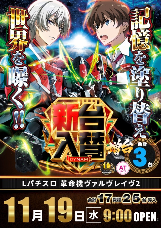 明日19日(水)L革命機ヴァルヴレイヴ2増台!全16機種導入