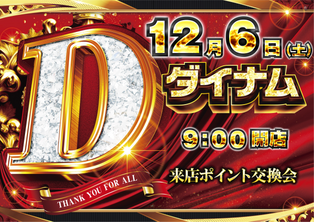 明日12月5日(金)ダイナム栃木佐野高萩店誕生日🎉10周年🎉