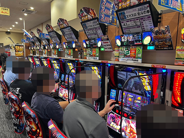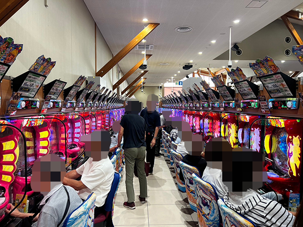 16時半ごろの2.222円パチンコでは「Pフィーバー機動戦士ガンダムユニコーン 再来-白き一角獣と黒き獅子-」などのラッキートリガー搭載機が盛況で、機種のポテンシャルをフルに活かすプレイヤーを確認している。