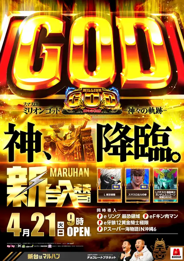 28日新台入替(予定)待望のミリオンゴッド増台!9時開店!